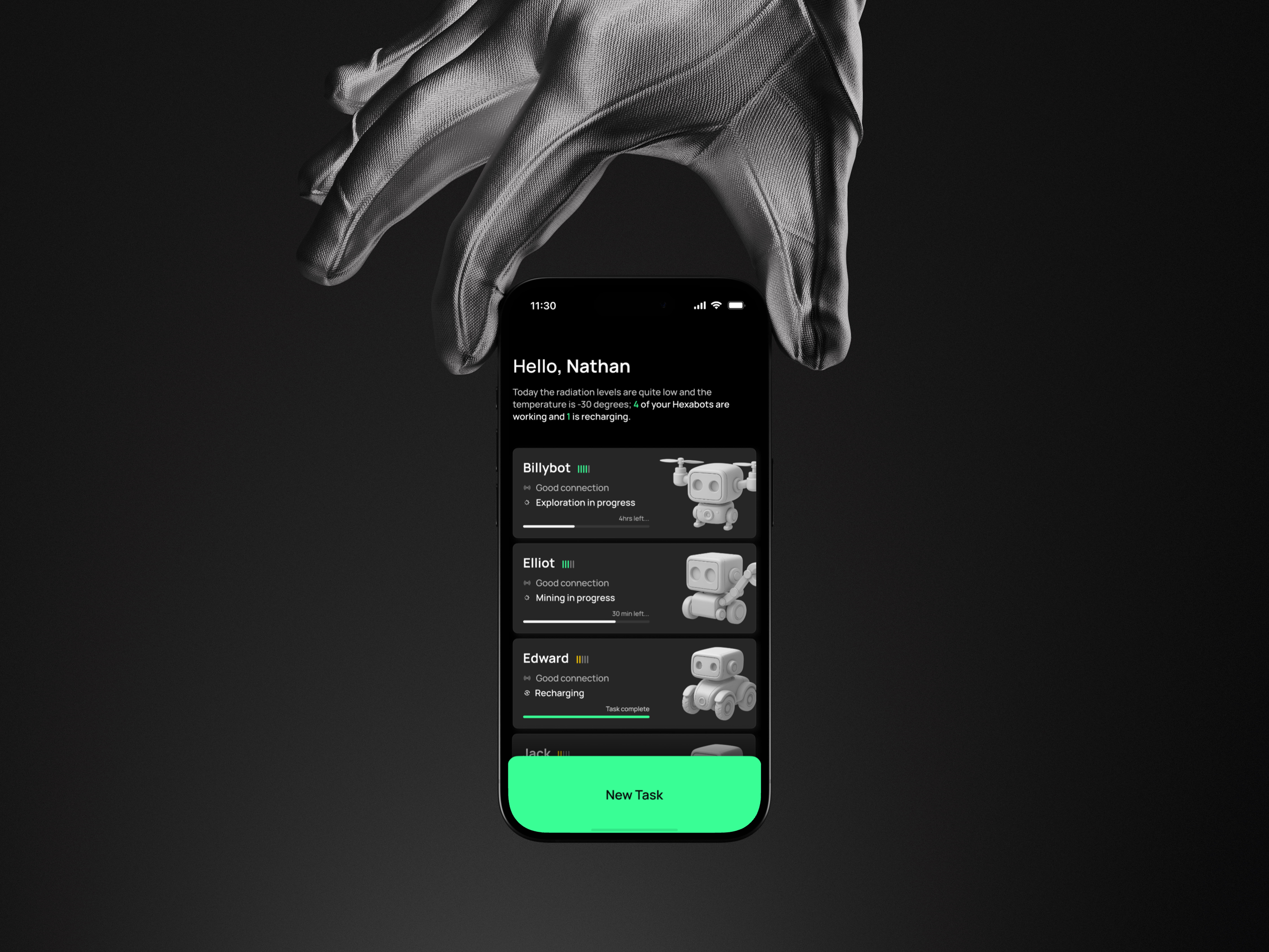 In critical scenarios, the interface cannot afford ambiguity or unnecessary cognitive load: it must provide an immediate overview of the fleet and direct access to action. This led to the choice of a visualization capable of conveying the status of the Hexabots in just a few seconds, along with a fast and streamlined task creation and assignment flow, with priorities always visible.